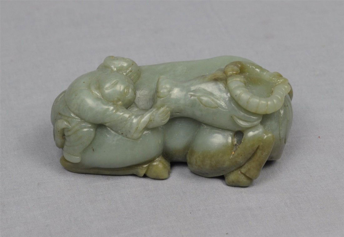 Nice Carved Celadon Jade Buffalo and Boy