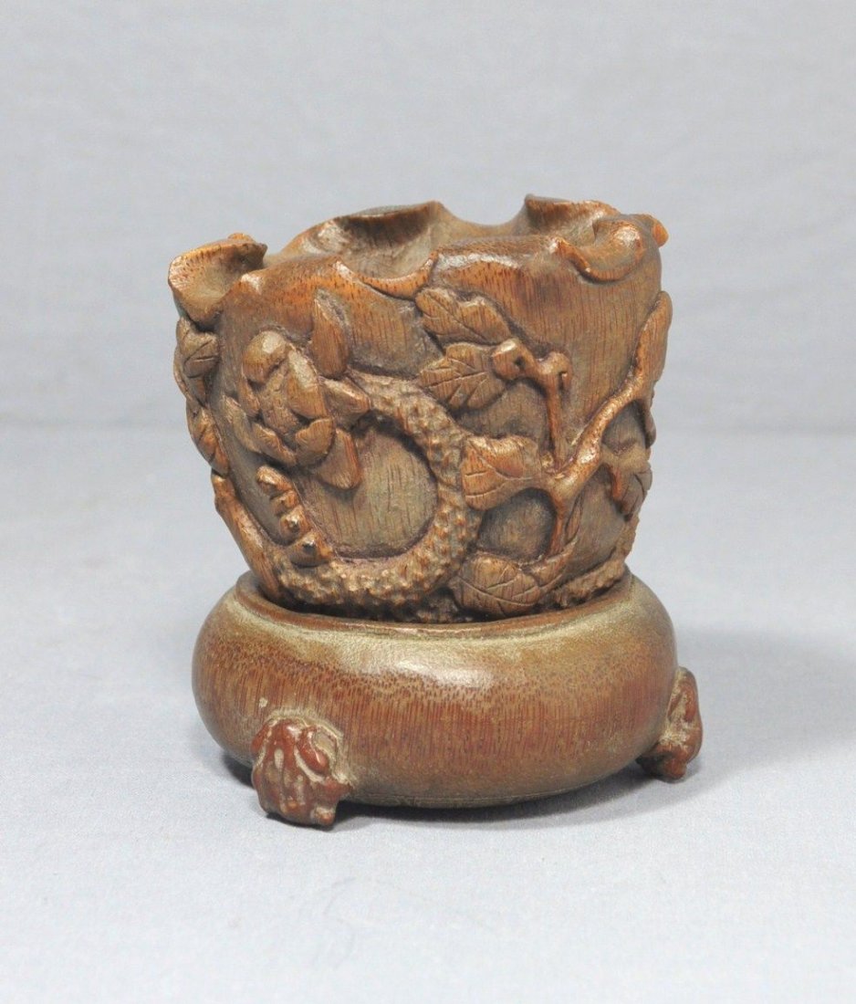 A FINE 17TH CENTURY CHINESE CARVED BAMBOO LIBATION CUP Kangxi, of naturalistic form. 12 cm x 9 cm.Hannam's Auctioneers Ltd4.3(416)£500Mar 19, 2026
