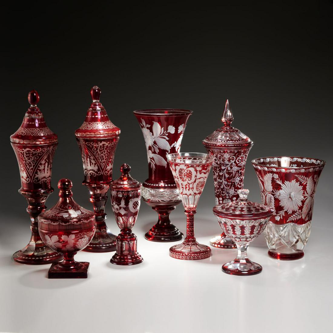 Nice collection antique Bohemian ruby glass