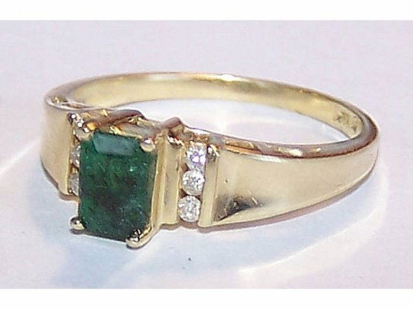 Sold14k Gold Ring With Dark Green Emerald Stone & Diamonds14k gold (tested) custom ring with a large rectangle shaped Emerald stone. Nice deep emerald color. Ring size 7.5. Weight - 10.7grams. FREE DOMESTIC SHIPPING.See Sold Price