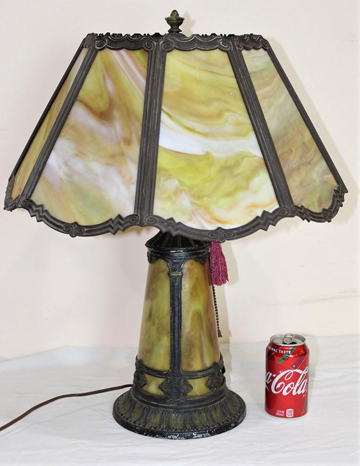 Cast iron dome shaped slag glass shade table lamp, original 3 bulb pull socket, 18"X20"Synesael Davies Auctions4.7(205)$50Feb 24, 2026