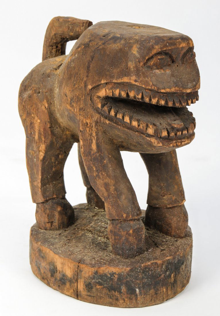 Art Deco Carved Wood Lion Sculpture
