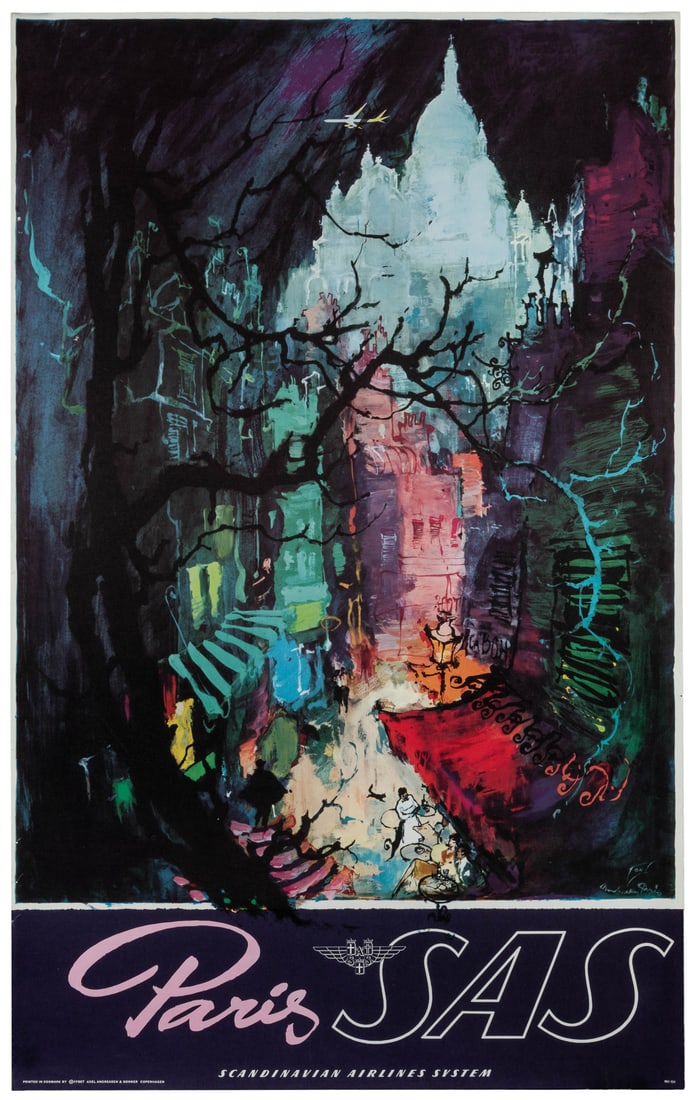 SoldOtto Nielsen (Danish, 1916-2000) Paris and Africa SAS,Scandinavian Airlines System 20th century artist's initials printed in image; printed FFSET Axel Andreasen & Sonner Copenhagen each 39.25 x 24.25 in.See Sold Price