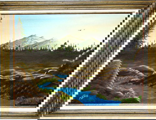 NIFLIS, OIL ON BOARD STREAM THROUGH MOUNTAINS