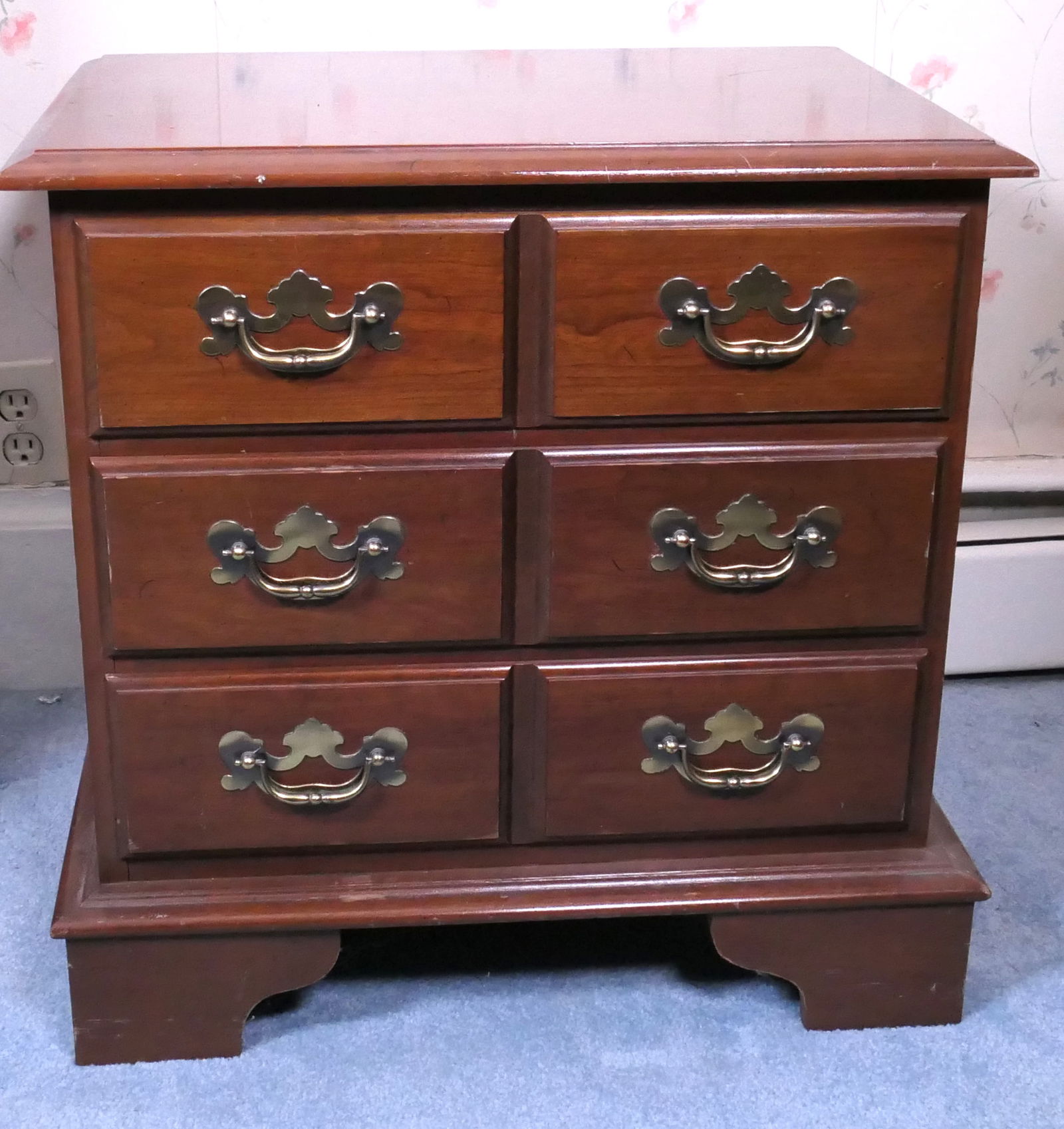 Four drawer pine chest w/ reeded quarter columns on bracket feet, dovetailed drawers & case. 38"W xFeb 24, 2026Mahogany Three Drawer Nightstand by Theodore AlexanderFeb 27, 2026Chippendale 2 over 4 drawers, dovetailed case and drawers, brass pulls, 42"W x 55"T x 19"DFeb 24, 2026High Chest in Solid Cherry Wood with Seven Drawers and Brass HardwareFeb 25, 2026Antique American Chippendale Chest of DrawersMar 06, 2026Antique Cherry Queen Anne Highboy DresserFeb 28, 2026George III Style Mahogany Chest of Drawers3 days LeftPair of Baker Campaign-style NightstandsFeb 27, 2026An English style mahogany chest of drawers5 days LeftMahogany Three Drawer French Style Chest with Brass Hardware24 hrs LeftEarly American George III Cherry Slant Front DeskMar 07, 2026Butler Timeless Easterbrook Chest of Drawers with Bronze Accents467 Lots AwayAntique Mahogany Five-Drawer Bachelor's ChestFeb 28, 2026Baker George III Style Mahogany Bachelor's ChestFeb 28, 2026CONTEMPORARY METAL ACCENTED 3-DRAWER CHEST OF DRAWERS4 days LeftCampaign Style 3 Drawer ChestFeb 26, 2026