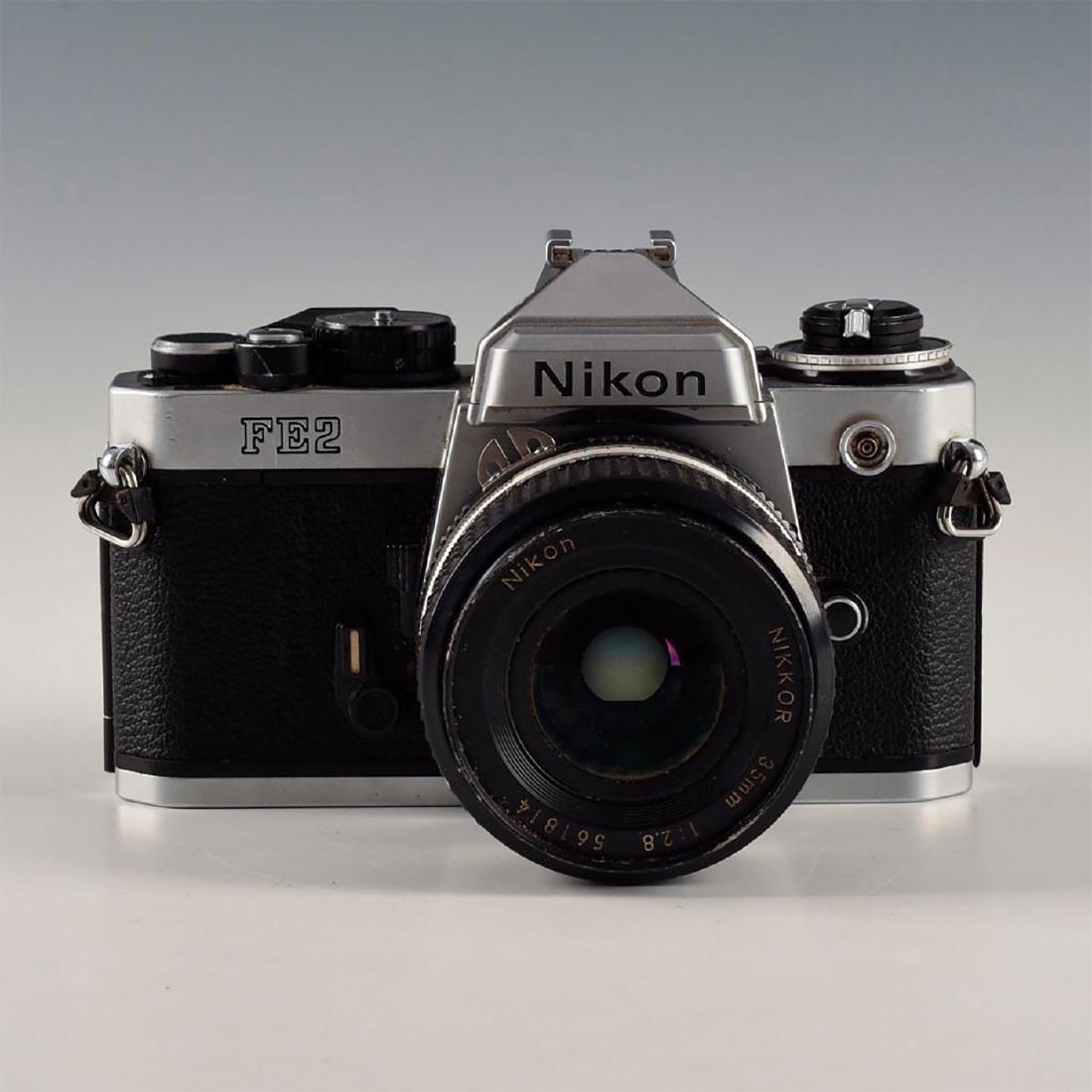 SoldNIKON SLR FE2 WITH NIKKOR 35MM F2.8 LENSBuilt-in meter and self timer, advance winds and shutter fires. Issued: 1983-1987 Dimensions: 6"L X 4"D X 4"H Edition Number: 2415121 Manufacturer: Nikon Country of Origin: JapanSee Sold Price