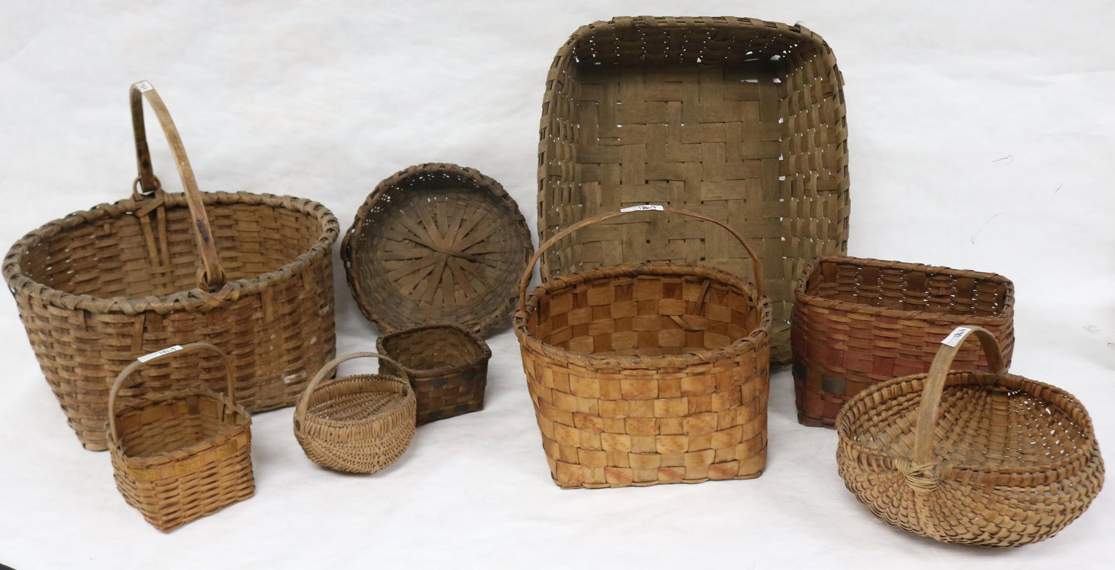 NINE 19TH C. BASKETS, 2 MELON BASKETS, 5" & 7