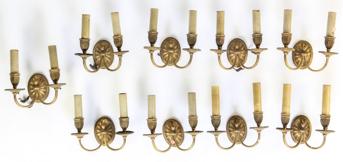 Nine 2 Arm Sheraton Style Bronze Sconces