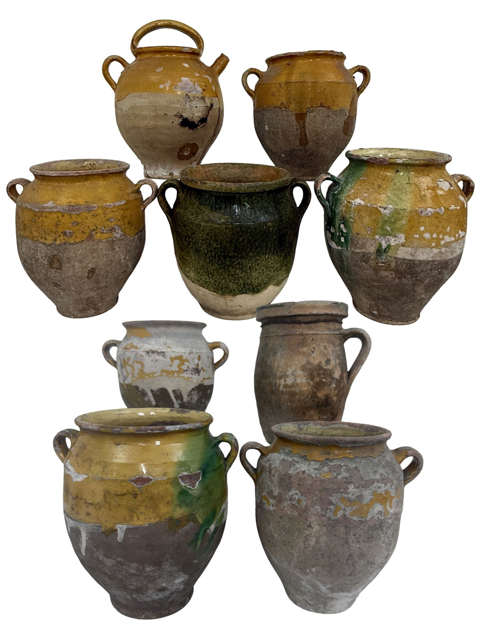 NINE ANTIQUE FRENCH EARTHENWARE POTS