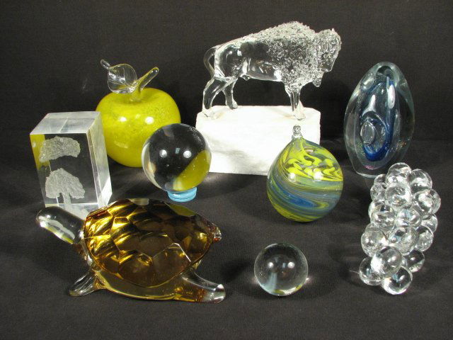 NINE ASSORTED ART GLASS PAPERWEIGHTS: TRABUCCO, EICKHOL