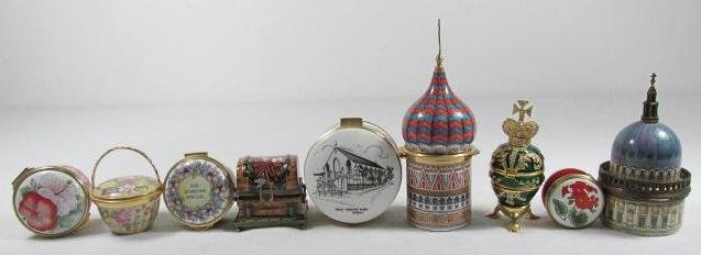LOT ANTIQUE BRONZE BOXES, VANITY ITEMS, ETCMar 07, 2026Onyx, Porcelain & Enamel Trinket Boxes 4pc LOTFeb 26, 2026Lot 6 19th C Lithographed Tin Christmas BoxesMar 07, 2026Lot of Seven Hand Painted Wood & Paper Mache Boxes2 days LeftENAMEL LOT OF TRINKET BOXES PILLBOXES INCL. HEREND, LIMOGES, NEIMAN MARCUS7 days LeftLOT OF BISCUIT AND CHOCOLATE TINSFeb 26, 2026(6) FABERGE STYLE JEWELED & ENAMELED EGG-FORM BOXES, 4 MUSIC BOXESFeb 22, 2026(4) PAINTED TOLE TEA CANISTERS, 2 NOW FASHIONED AS TABLE LAMPS7 days LeftAntique lap desk, Chinese lacquer jewelry box, and more boxesFeb 26, 2026Four Remington Collector Tins 725 Rounds .22 LR Ammunition and 12 GA Ducks UnlimitedA group of twelve contemporary porcelain and enamel trinket boxes7 days Left10 Enameled BoxesMar 14, 20268 Enameled BoxesMar 14, 20268 Enameled BoxesMar 14, 2026ANTIQUE ENAMEL / PORCELAIN BOXES, PATCH, SNUFF ETCMar 07, 20265 Porcelain BoxesMar 14, 2026
