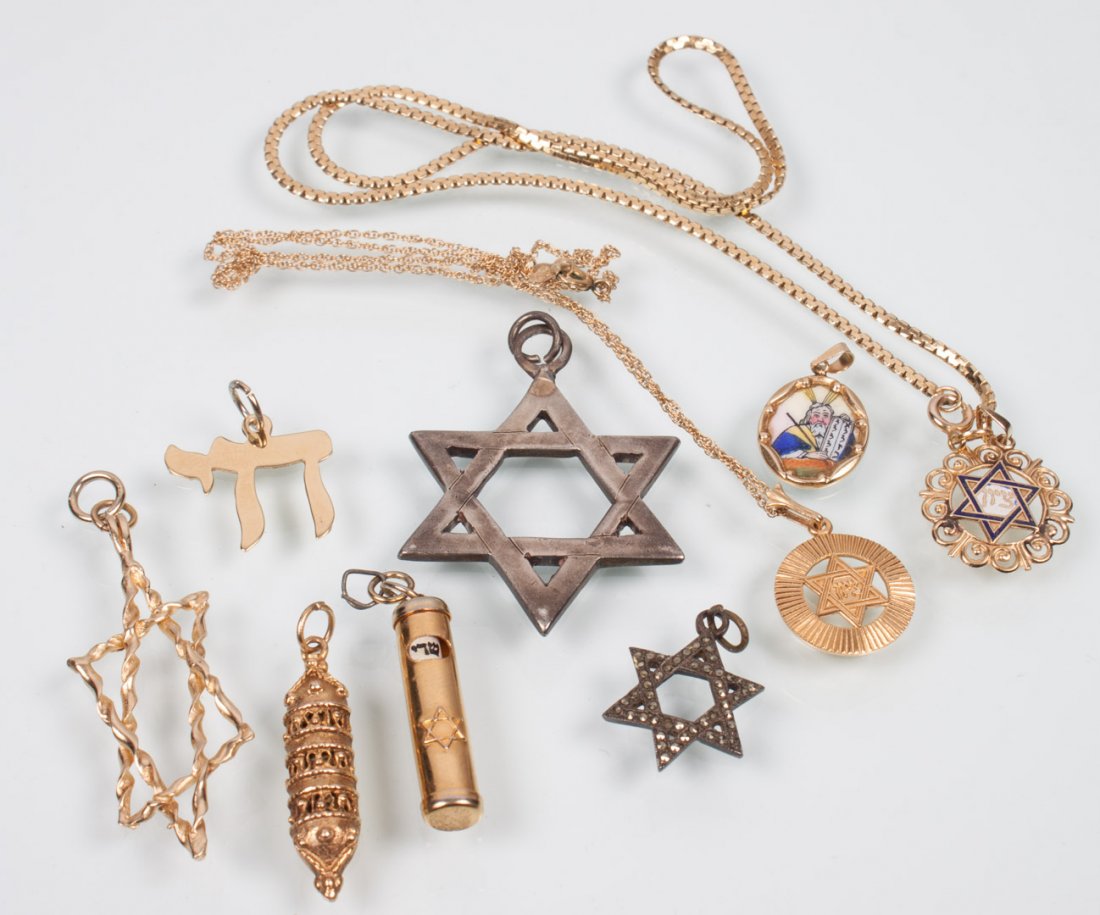 Vintage Estate Mixed Jewelry Lot, Gold-Plated More, 9 Pieces, 63.68 GramsMEGA LOT LADIES GOLD-TONED JEWELRY (28)Mar 08, 2026Lot of silver jewelry. To include: several Jerusalem cross pins, maple leaf brooch with goldMar 01, 2026Lot of gold jewelry and accessories. To include: 1) Antique 15K gold locket. Monogrammed. 4.5 grams.Mar 01, 2026Lot of Sterling Necklaces and PendantsMar 07, 2026An Estate Lot of Five Necklaces, Late 20th-Early 21st Century, 44ZF2 hrs LeftGold Jewelry6 days LeftJudaica Items6 days Left(7) PIECE JUDAICA JEWELRY GROUPMar 05, 202614K Gold Miscellaneous/Scrap Jewelry and Two Small 10K PiecesMar 28, 2026Gold Necklace, Judaica6 days LeftJudaica Collection Of Menorahs, Sefer Torah Scroll, (2) Siddur Avodat, & Avigdor Candle Holder4 days Left14K Yellow Gold Jewish Judaica Star of David Chai PendantMar 12, 202614kt Yellow Gold 0.85ctw Diamond PendantMar 02, 2026Kestenmade, Etc. Watch Fobs and Chains, 8Apr 14, 2026A gold bar pendant,6 days Left