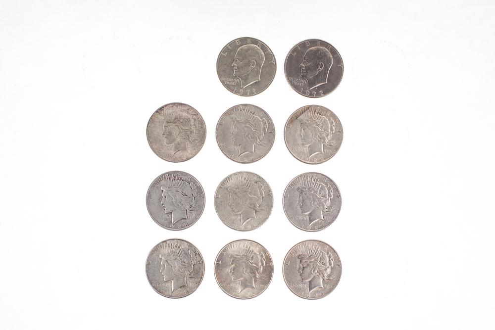 Nine Peace Silver Dollars, Two Eisenhower Silver