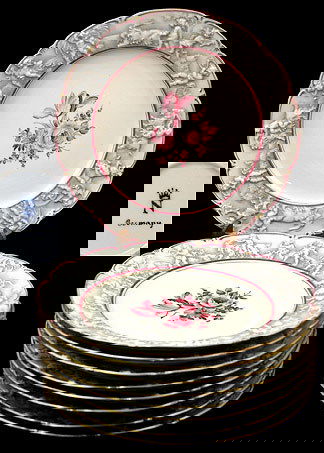 Limoges and Bavaria Dinner Plate LotMar 28, 2026ENGLISH HAND-PAINTED DERBY PORCELAIN SPRIG MOTIF PLATES, LOT OF EIGHTMar 05, 2026ENGLISH HAND-PAINTED DERBY PORCELAIN FLORAL MOTIF TABLE ARTICLES, LOT OF SIXMar 05, 2026Four Rosenthal plates in hand-painted porcelain. Pink flowers and border. 1930s / 40s.Mintons, England. Dish, bowl and four plates in hand-painted porcelain. Pink roses and goldMeissen "Pink Rose" Porcelain Plates, 9Mar 12, 2026Early 20th Century Floral Haviland Dessert Plates, Set of 812 Lenox Porcelain 7 inch Dessert Plates, Floral Bouquet , circa 1950Mar 15, 2026Set of 6 Sheffield Anniversary Porcelain Fine China Dinner Plates 10"Mar 28, 20268 Minton England Gilt Porcelain Dessert Plates H5017 circa 1955Mar 15, 2026Set 6 Theodore Haviland Limoges Dinner Plates17 hrs LeftFrench Limoges Vintage Pink Rosette Patterned China Plates and Bowls, Set of Nineteen8 Copeland Spode Porcelain Salad Plates, c1900Mar 15, 20268 Minton England Gilt Porcelain Dinner Plates H5017 circa 1957Mar 15, 202612 Chinese Export Rose Medallion Porcelain Dinner PlatesMar 12, 20266 French Hand Painted Porcelain Plates Cherubs Landscapes Florals c19007 days Left