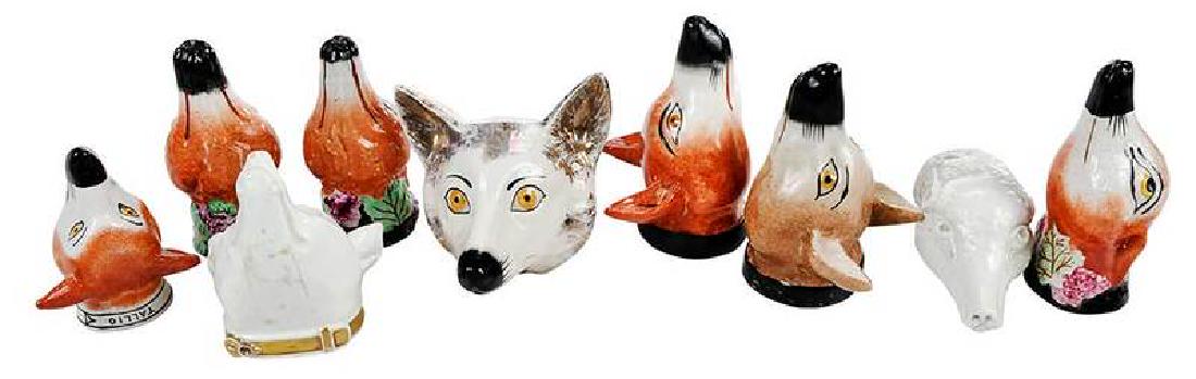 Nine Porcelain Fox Stirrup Cups