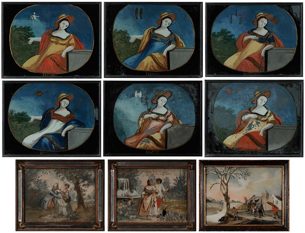Nine Reverse Paintings on Glass