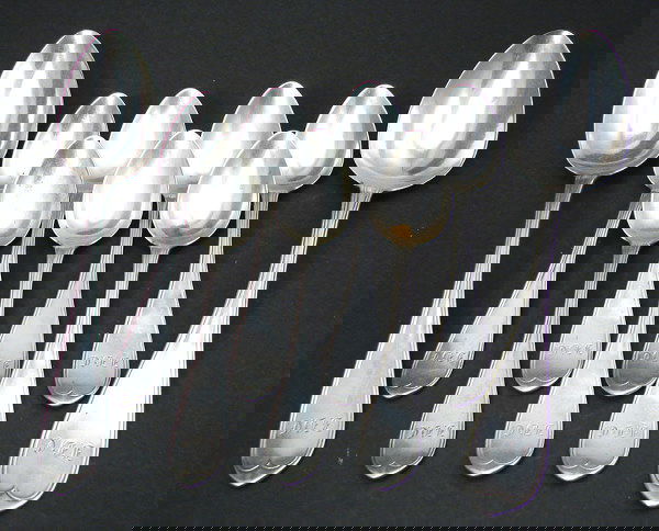Nine Spoons. Two Serving and Seven Teaspoons. Sig