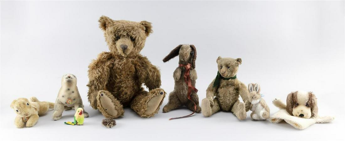 NINE STEIFF STUFFED ANIMALS Two circa 1920s bears,