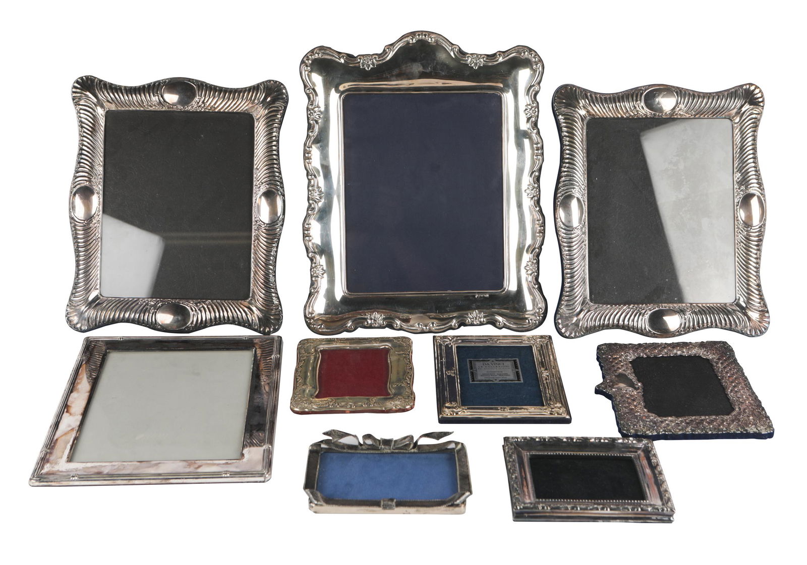 NINE STERLING & SILVER-PLATE PICTURE FRAMES