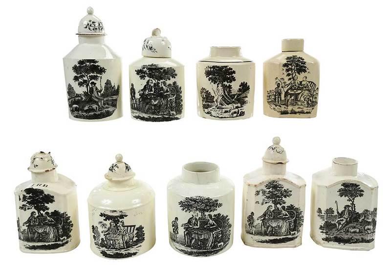 Nine Tea Party Creamware Tea Caddies