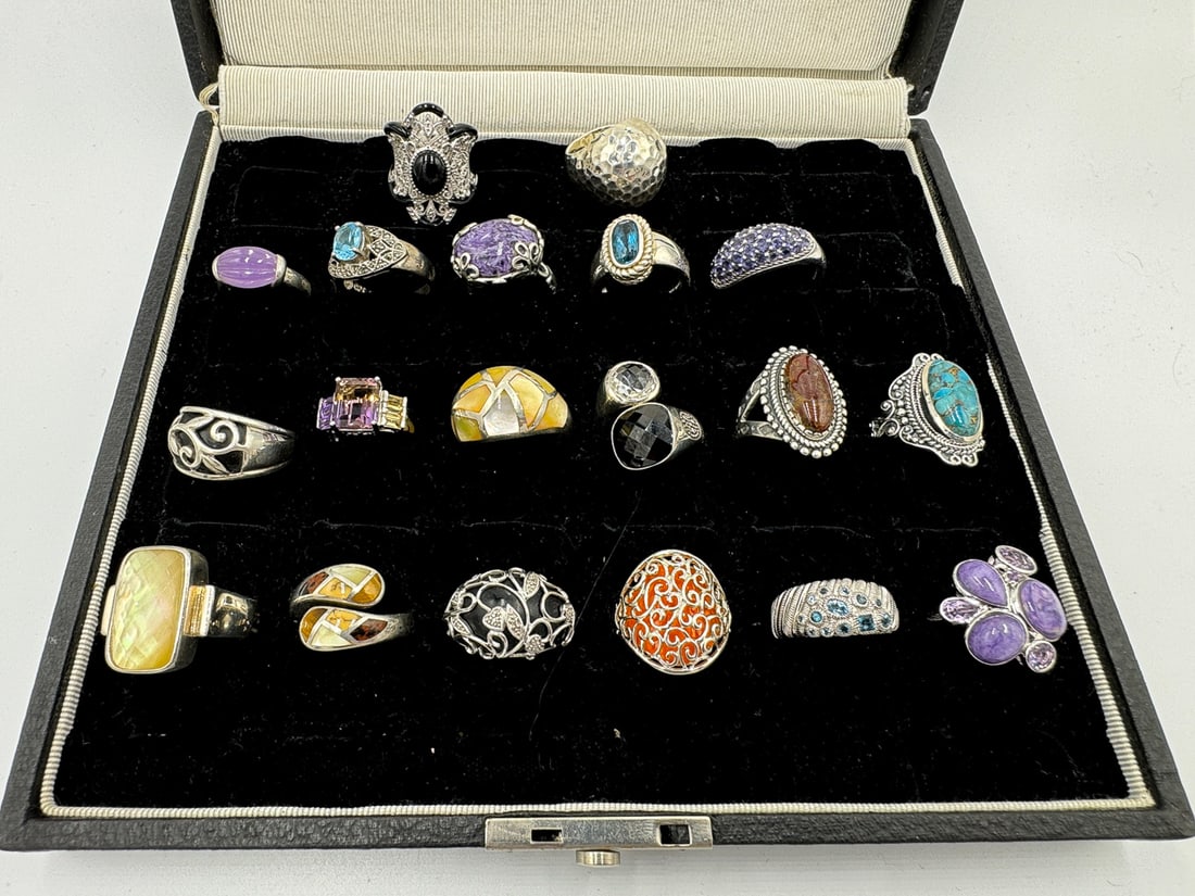 Mostly All Sterling Silver Ring Lot1 hr LeftSterling Silver Ring Lot. 18 rings size 8 - 12 some signed NH D'Joy DTR ext. wt. 172 grams22 hrs LeftGroup lot of Vintage 925 sterling silver ringsJun 30, 2025Group lot of Vintage 925 sterling silver ringsJun 30, 202524 Sterling Silver 925 & 6 Metal Rings 30pc LOT3 days Left10 RINGS ALL STERLING SIZE 7 COLLECTION LOT 63GRAMMar 29, 202610 RINGS ALL STERLING SIZE 8 COLLECTION LOT 59GRAMMar 29, 202610 RINGS ALL STERLING SIZE 6 COLLECTION LOT 50GRAMMar 29, 20268 RINGS ALL STERLING SIZE 5 COLLECTION LOT 28GRAMMar 29, 2026Ring Delight5 days Left(10) vintage STERLING SILVER rings, from estate collection we are selling, some with stones, someApr 10, 2026(17) STERLING SILVER & GEMSTONE RINGSMar 21, 2026Large Grouping of Sterling Silver Rings1 hr LeftEIGHT CHINESE SILVER RINGS in various forms and sizes. (8)Mar 17, 2026Six Silver Rings All Stamped 925 Various Stones6 Sterling Gemstone Fashion RingsMar 18, 2026