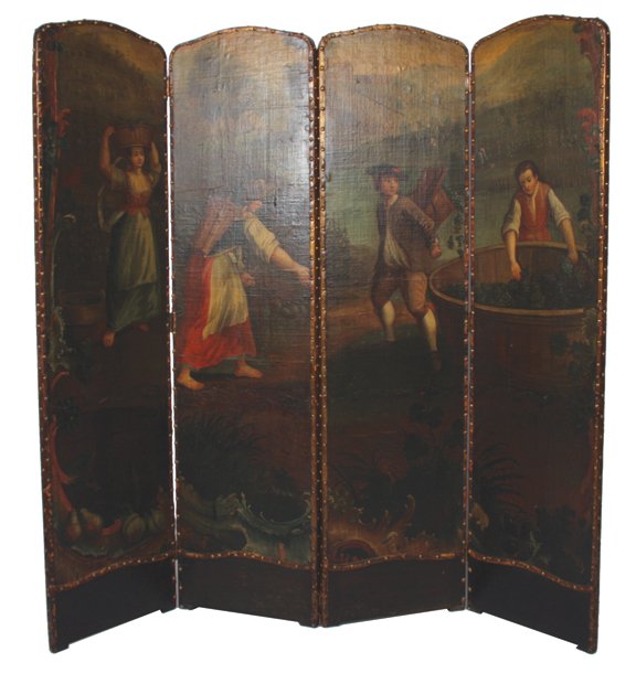 Nineteenth-century four panel hand-painted screen
