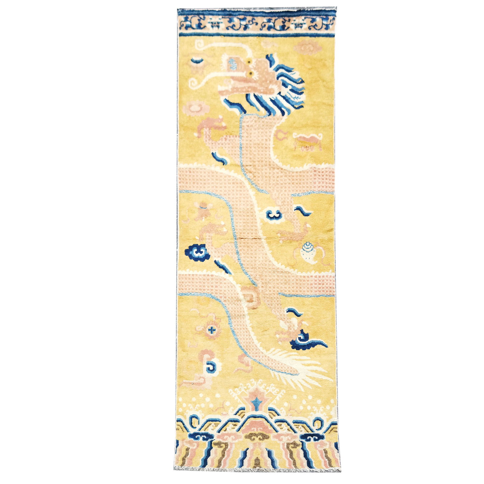 SoldChinese Pillar Runner/RugDragon design, yellow ground rug/runner. [104" x 33"]. In overall good condition.See Sold Price