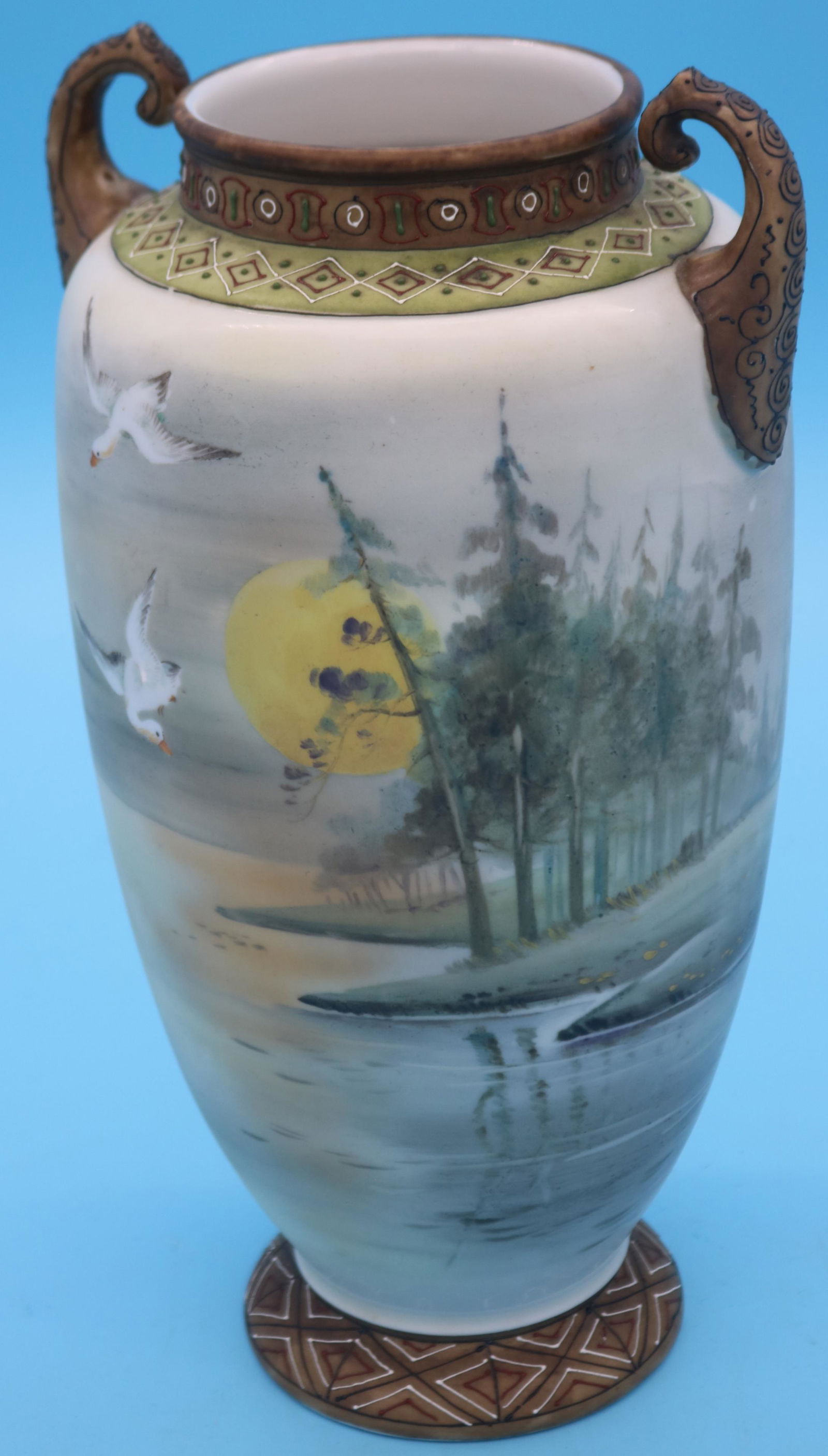 NIPPON HANDLED VASE, HAND PAINTED SCENIC DESIGN,