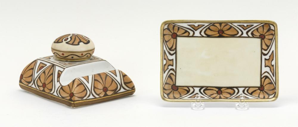 NIPPON PORCELAIN INKWELL WITH UNDERTRAY Rectangular,