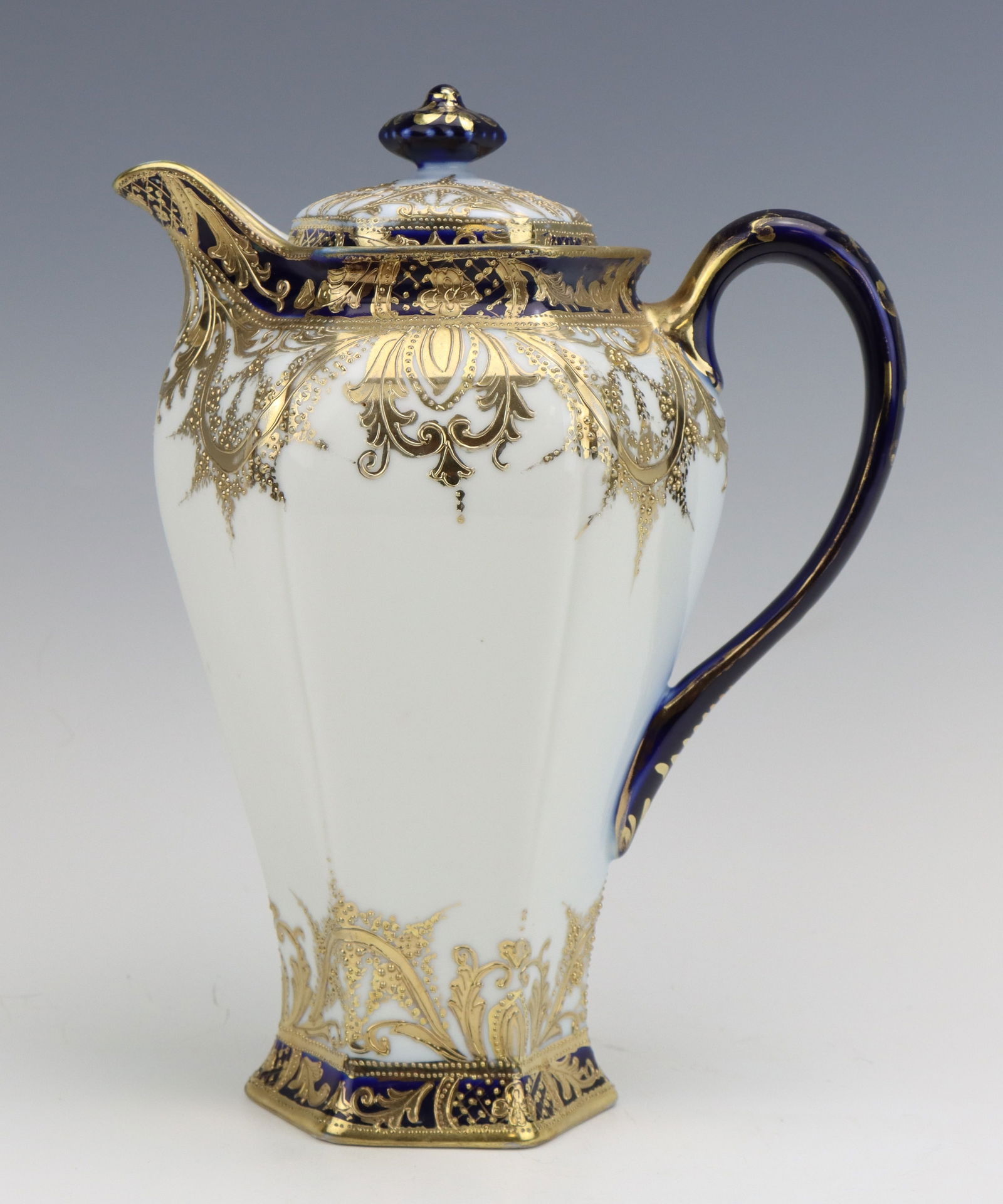 Sold14 Piece Nippon Porcelain Tea Set, cobalt blue with gold decoration; teapot height 5 3/4 inches.14 Piece Nippon Porcelain Tea Set, cobalt blue with gold decoration; teapot height 5 3/4 inches.See Sold Price