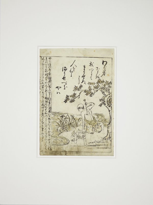 SoldOriginal 18th Century Nishikawa Sukenobu Japanese Woodblock Print Sumi Ehon BookplateOriginal 18th Century Nishikawa Sukenobu Japanese Woodblock Print Sumi Ehon Bookplate. From April 11 1960Sotehrby's Auction Unframed with matting.. Measurements in inches: 18 x 14, image: 11 x 7 1/2 CSee Sold Price