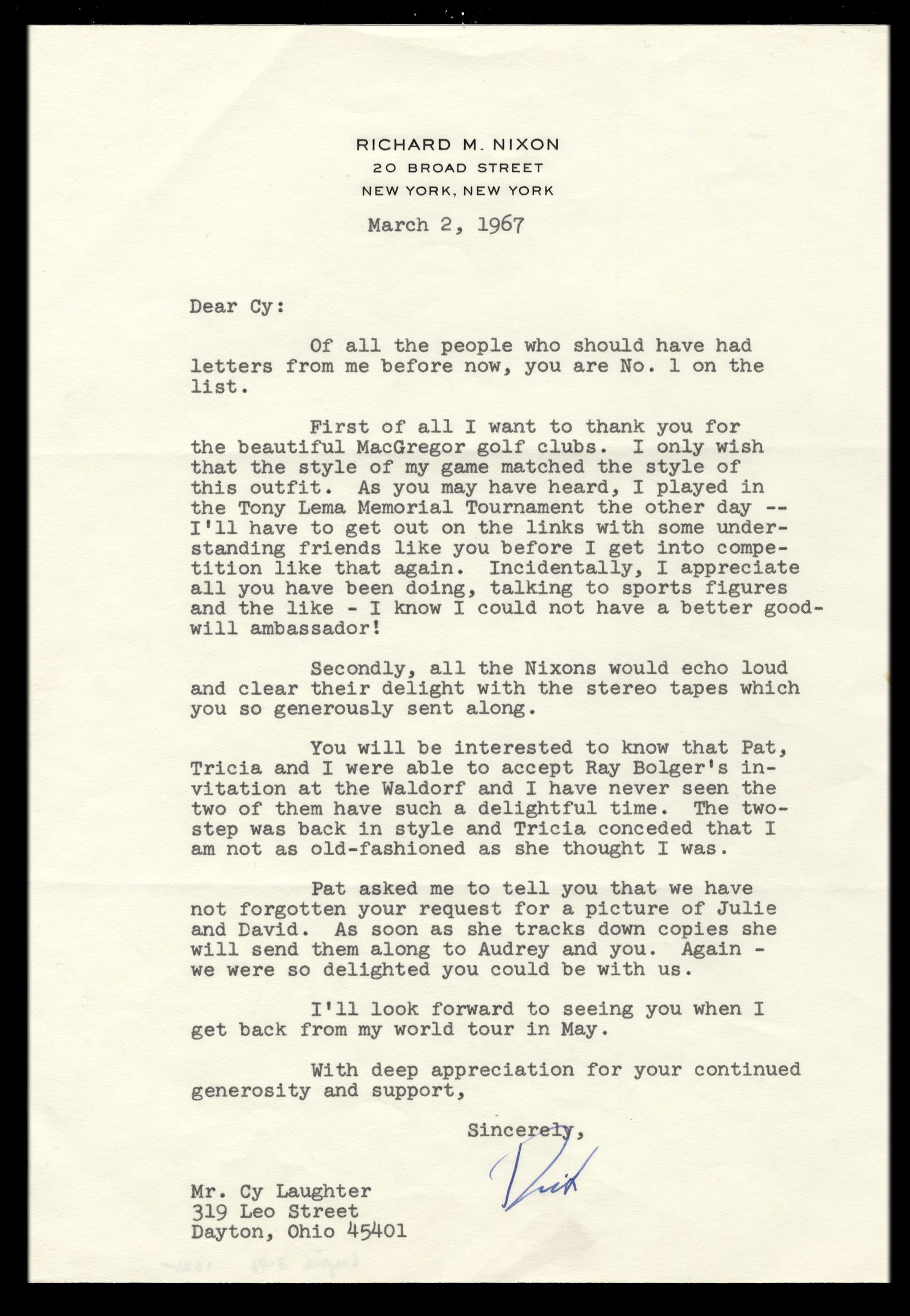 TRUMAN HARRY S.: (1884-1972)Mar 26, 20261960 Richard Nixon Typed Letter Signed to Eugene TorsayMar 15, 2026Richard E. Byrd Typed And Hand Written Signed Letter2 days LeftWWII 1945 Pacific Named Killed In Action (KIA) Chaplain Letter3 days LeftRODGERS & CAHNMar 24, 2026TRUMAN HARRY S.: (1884-1972)Mar 26, 2026Bill Clinton Signed 6.75x9 Letter on White House Letterhead COA BeckettMar 11, 2026STROUD ROBERT: (1890-1963)Mar 25, 2026J. Edgar Hoover Signed FBI Letter Dated 1948Mar 15, 2026FORD FORD MADOX: (1873-1939)Mar 25, 2026A large collection of fan mail sent to the Beatles on their first full US tourMar 18, 20261965 Letter to Jim Brown Legal Investigation NFL History5 days Left1958 Typed Signed Letter Army 5 Star General Omar Bradley3 days Left1966 Typed Letter from Pete Rozelle to Jim Brown 144948 - August 18Mar 16, 2026THOMAS DYLAN: (1914-1953) Thomas ruminates on a proposed autobiography of his early yearsMar 25, 2026137183 Bo McMillin Lions/ Eagles Signed TLS Detroit Lions Letterhead d.1952 JSA3 days Left