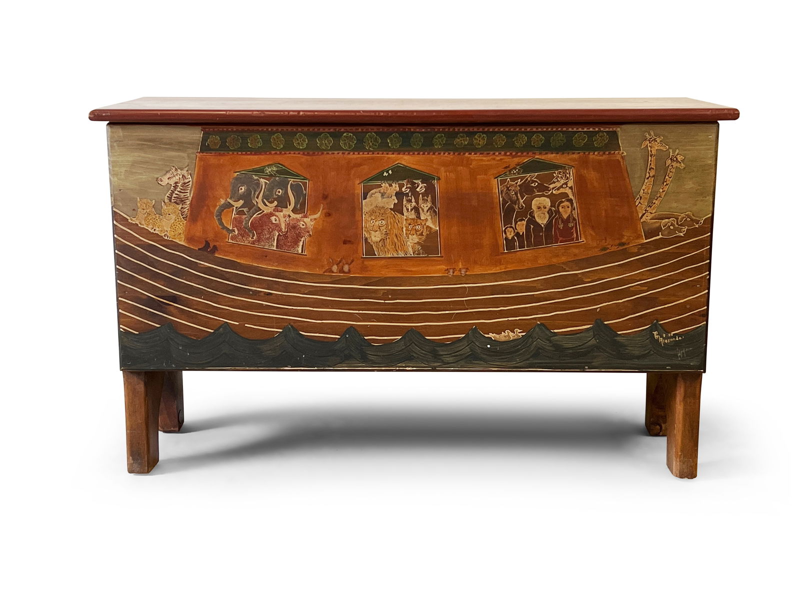 Noah's Ark Decorated Pine Chest
