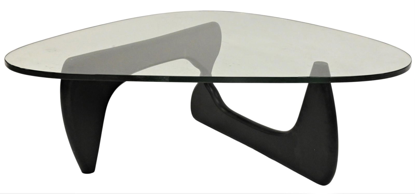 SoldIsamu Noguchi Style Coffee TableLot 1 Isamu Noguchi Style Coffee Table Kidney shaped glass top raised on sculpted solid wood with black finish in the style Isamu Noguchi 15 1/2 x 65 x 36 inches Provenance: From a Fairfield CountySee Sold Price