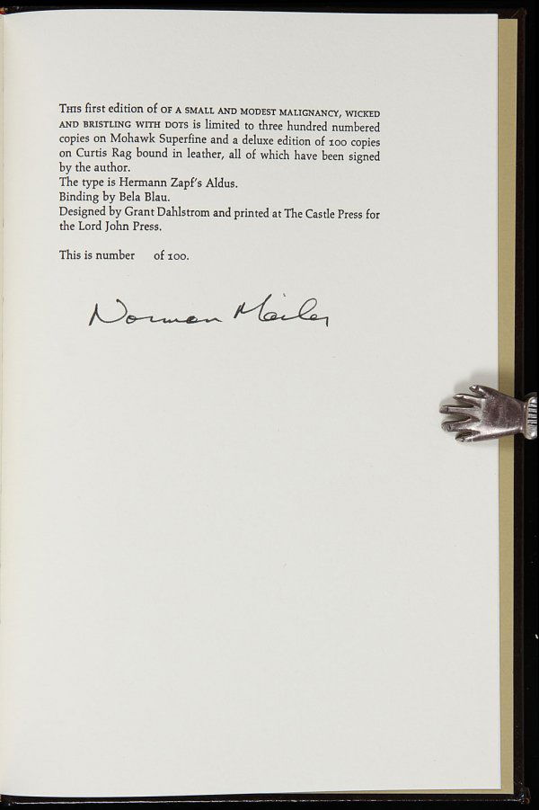Norman Mailer Small and Modest Malignancy Ltd Edn