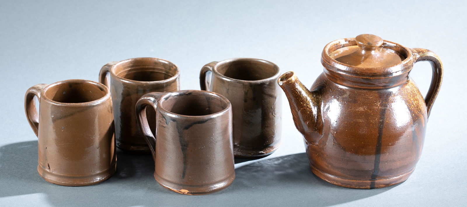 AMERICAN FOLK POTTERY DIMINUTIVE VESSELS, LOT OF FIVE2 days LeftVintage Art Pottery Lot Of 3 Brown Stoneware JugsApr 12, 2026ASSORTED EUROPEAN AND OTHER COPPER PITCHERS AND TEA POT, LOT OF FIVE725 Lots Awaylot of 3 antique Chinese famille rose porcelain teapot sugar bowl and creamerApr 06, 2026Russel Wright Lidded Sugar Bowl, Creamer, Saucer, Plates5 days LeftDanish studio ceramicist. Three unique miniature ceramic mugs. Decorated with various earth-toned6 Art Pottery Items by Frankoma in Green and Brown GlazeMarianne Westman for Rörstrand, "Maya", a teapot and creamer.Valluris, France, coffee pot, lidded bowl and a coffee mug. Luster glaze.Kähler, small teapot in uranium glaze.Four teapots China, 20th century267 Lots AwayA Group of Three Chinese Yixing Pottery Teapots and CoversMar 14, 20264 SIGNED ABUJA POTTERY VESSELS3 days LeftAn Elkington Sterling Tea ServiceMar 22, 2026Hull Brown Drip coffee ,Tea pots, cream pitcher ,salt and pepper shakerand 2 mugs5 days LeftText to followMar 20, 2026