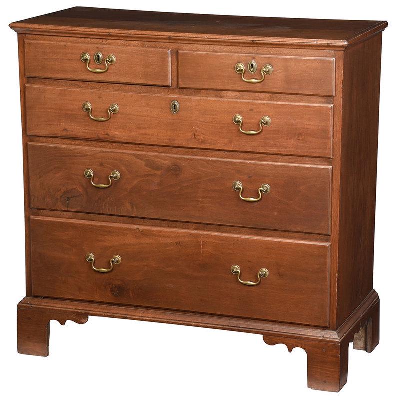 American Chippendale Mahogany Serpentine Chest of DrawersApr 09, 202618th Century Chippendale Walnut High Chest with Original Hardware1 day LeftCOUNTRY CHIPPENDALE CHERRY TALL CHEST New England, Circa 1800 Height 58.25". Width 39.5". DepthApr 09, 2026Federal Figured Maple Crossbanded and Satinwood Inlaid Cherry Chest of Drawers, Mid-Atlantic States,Mar 27, 2026Pennsylvania Chippendale Figured Walnut Dressing Table, Amory Haskell ProvenanceApr 09, 2026George II Figured Walnut Bachelor's Chest6 days LeftGeorge III Figured Mahogany Chest-on-ChestMar 29, 2026George II Figured Walnut Chest of Drawers, Circa 1740, Height: 36-1/4 in (92.1 cm); Width: 37-3/4 inMar 27, 2026SEYMOUR SCHOOL MAHOGANY BOWFRONT BUREAU Boston, Circa 1810 Height 39". Width 49.5". Depth 22.5".Apr 10, 2026Louis Philippe Brass-Mounted Walnut Chest of Drawers6 days LeftELDRED WHEELER TIGER MAPLE TALL CHEST Massachusetts, 20th Century Height 48". Width 36.5". DepthApr 09, 2026French Empire Walnut Commode, early 19th c., H.- 33 in., W.- 45 3/4 in., D.- 26 3/4 in.Mar 27, 2026George III Mahogany Dressing Chest of Drawers6 days LeftSouthern Chippendale Walnut Chest of DrawersMar 26, 2026French Empire Marble Top Walnut Commode, early 19th c., H.- 36 1/2 in., W.- 49 in., D.- 21 in.Mar 27, 2026French Empire Marble Top Burled Walnut Commode, early 19th c., H.- 35 1/2 in., W.- 51 1/4 in., D.-Mar 27, 2026