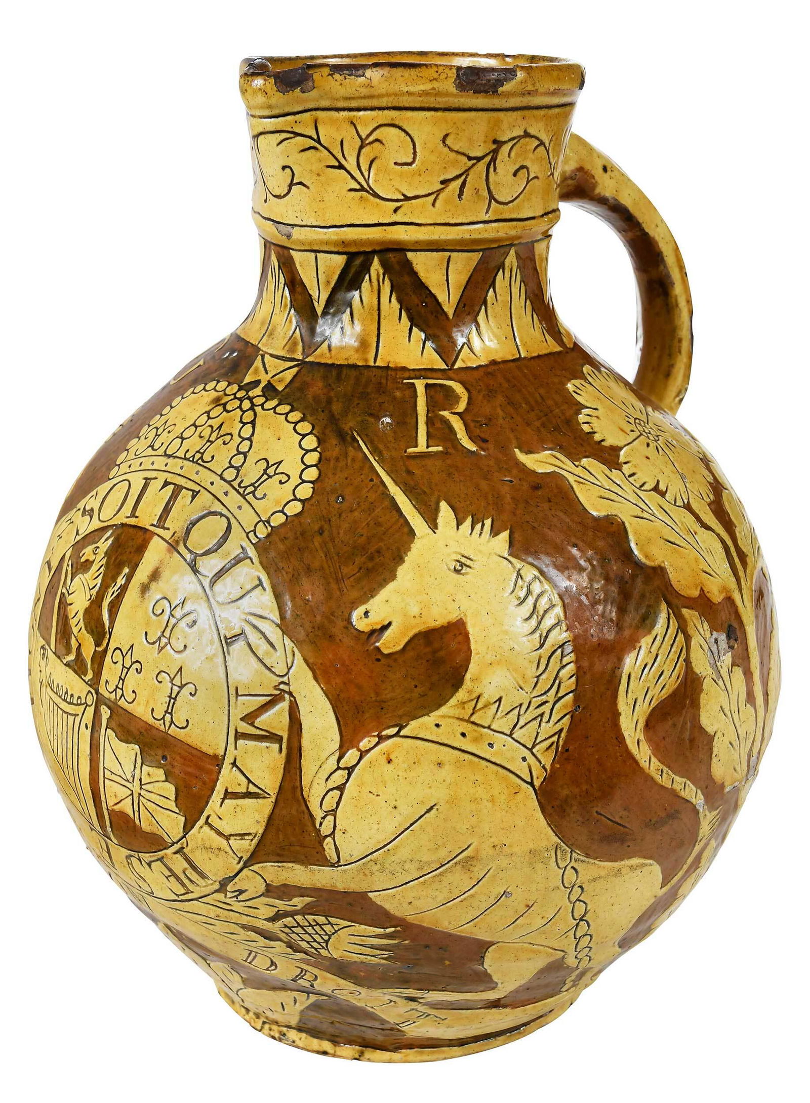 North Devon Slipware Armorial Harvest Jug