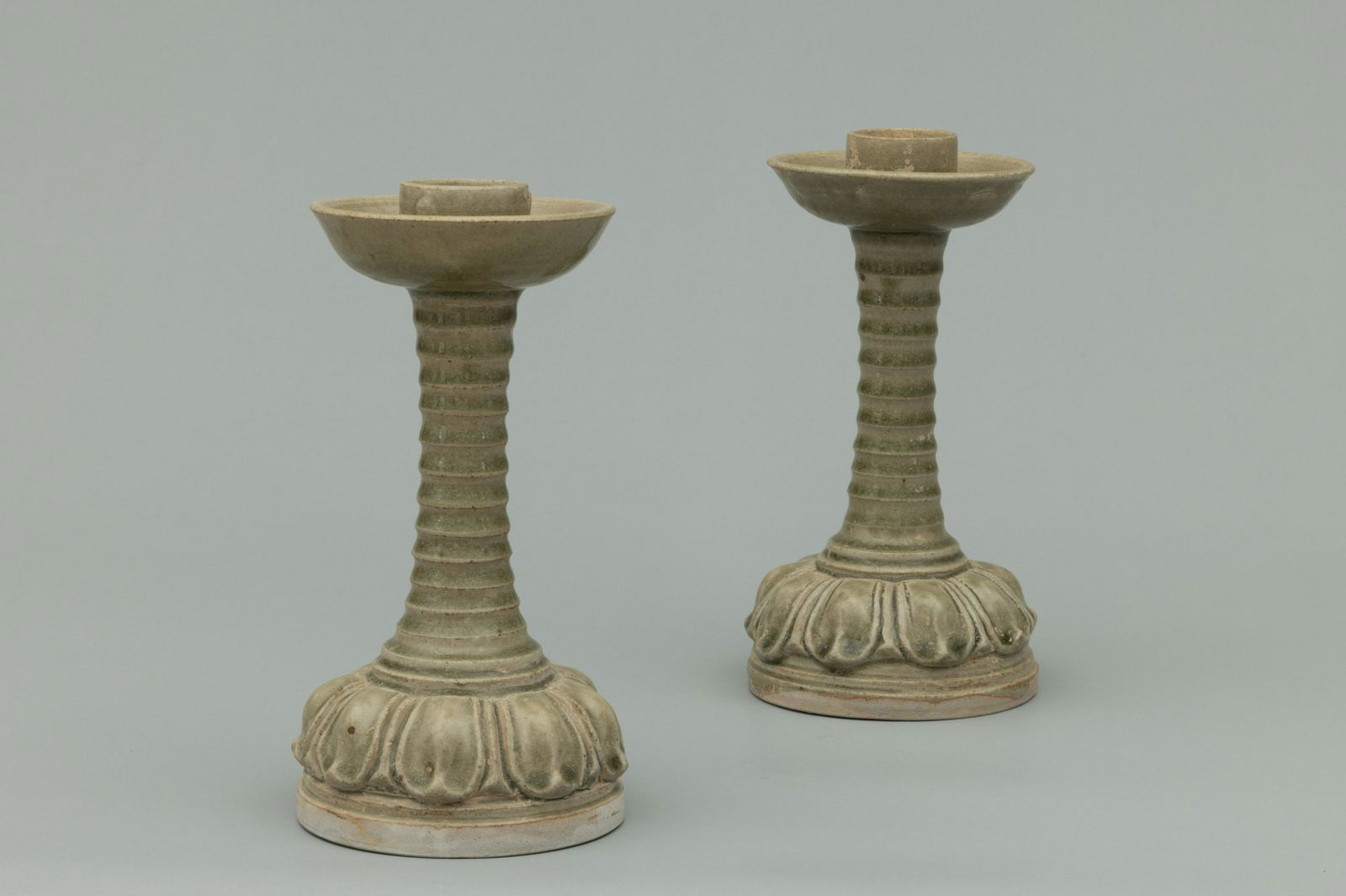 A PAIR OF LONQUAN CELADON TAPER-STICK HOLDERS AND A CELADON-GLAZED CUP AND STAND Ming Dynasty, 1...Bonhams4(382)£100