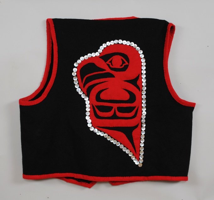 Northwest Coast Applique and Button Work Wool Vest