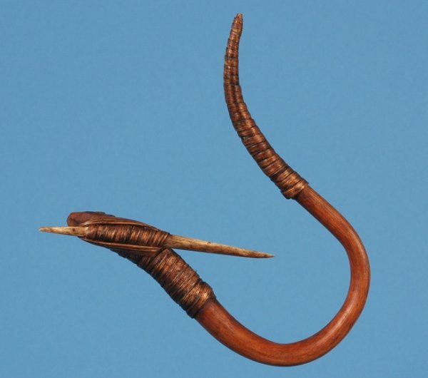 Northwest Coast Yew Wood Cod Hook with Bone Barb