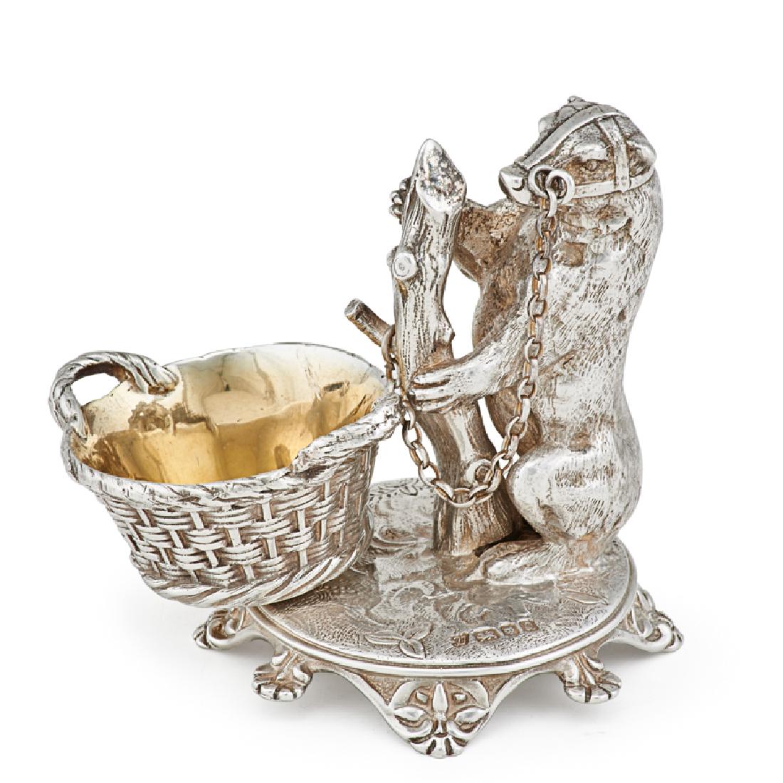 A cast silver dog A Edward Jones Ltd, Birmingham 1972Sterling Vintage & Contemporary Gorham HollowwareFeb 22, 202619th C. German Sterling Silver Figural Salt CellarFeb 26, 2026Victorian Sterling Silver Salt Cellar by Charles Boyton with Lion Design6 days LeftEnglish Sterling Silver and Vermeil Salt Cellar, Hands and Company, London, 1852-1853Pair Of Salt And Pepper Cellars Silver plated Figural Glass4 hrs LeftANTIQUE WYLER STERLING SALT CELLAR GLASS LINED FOOTEDFeb 25, 2026MERIDEN SILVER PLATED DOG & BIRD NAPKIN RING6 days Left19th C. German Crystal Mounted Figural Silver Miniature Taza4 hrs LeftCARTIER Paris 1960 Little Salt Cellar With Lid In Polished .925 Sterling Silver3 days LeftA VICTORIAN SILVER NOVELTY THREE PIECE CRUET SET2 days LeftA German novelty silver cocktail shaker in the form of a bear Neresheimer, stamped with crown an...Evald Nielsen, hammered salt cellar in Danish 830 silver.Silver Salt & Pepper Sleigh Cup With A Cherub4 hrs LeftAntique English Victorian Silver-Plated Inkwell3 days LeftSilver Plated Vintage Egg Cup CaddyFeb 28, 2026
