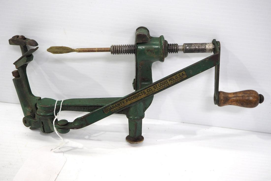 Antique McCormick Sickle Sharpener45 mins LeftAntique Cast Iron Apple Peeler - Advance Model 12"Mar 08, 2026Antique Goodell White Mountain Apple Peeler #3 Cast Iron Wood Handle772 Lots AwayAntique Cast Iron Meat Grinder - Enterprise No. 5 9"X11"Mar 08, 2026Eveready No. 55 Food Chopper Cast Iron Meat Grinder 9"Mar 08, 2026Vintage CE Hudson Little Star Cast Iron Apple Parer 1885Feb 27, 2026Specialized Heavy-Duty Manual Press Tool with Interchangeable Dies, Patent 19339403 days LeftT-handle corn shellerMar 27, 2026"Flyswatter" hand-crank beaterMar 27, 2026Little Giant box-mount corn shellerMar 27, 2026Belsaw K-350 Belt Drive Key CutterMar 01, 2026Box-mount hand-crank corn shellerMar 27, 2026Vintage Wooden Hand Crank Wood Coffee GrinderMar 04, 2026Antique Goodell Co Cast Iron Cherry Pitter Clamp-On DesignMar 02, 2026Antique Kitchen Tool Hand-Crank Meat Spice Grinder45 mins LeftH&S Hausman T-handle corn shellerMar 27, 2026