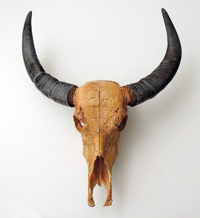 Nunun Ardica,Buffalo scull sculpture, signed , dated