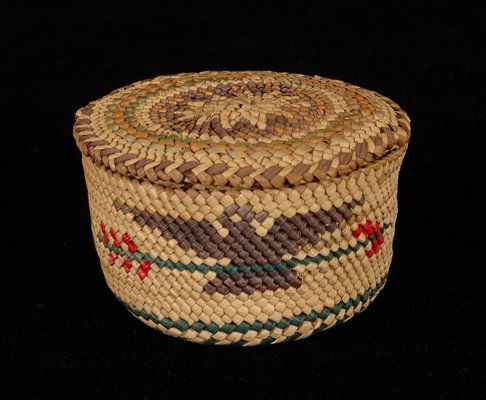 Nuu-chah-nulth Lidded Basket with Eagle and Arrow
