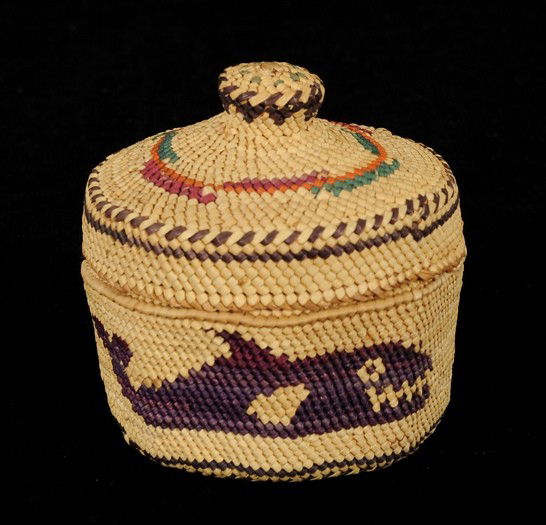 Nuu-chah-nulth Lidded Octagonal Shaped Basket with