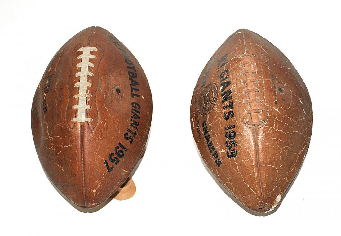 Sold1955 NY Giants Team Signed BallFrom the collection of Hall of Fame Sports Writer, Bill Madden. This lot is accompanied by a handwritten letter of provenance from Bill Madden. 1955 NY Giants Team Ball, Signed by the entire team. SigSee Sold Price