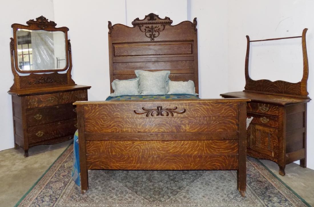 SoldAmerican Oak Bedroom Set - Bed, Dresser, WashstandAmerican Oak Bedroom Set - Bed, Dresser, Washstand - Dresser is 83 in tall x 46 x 21See Sold Price