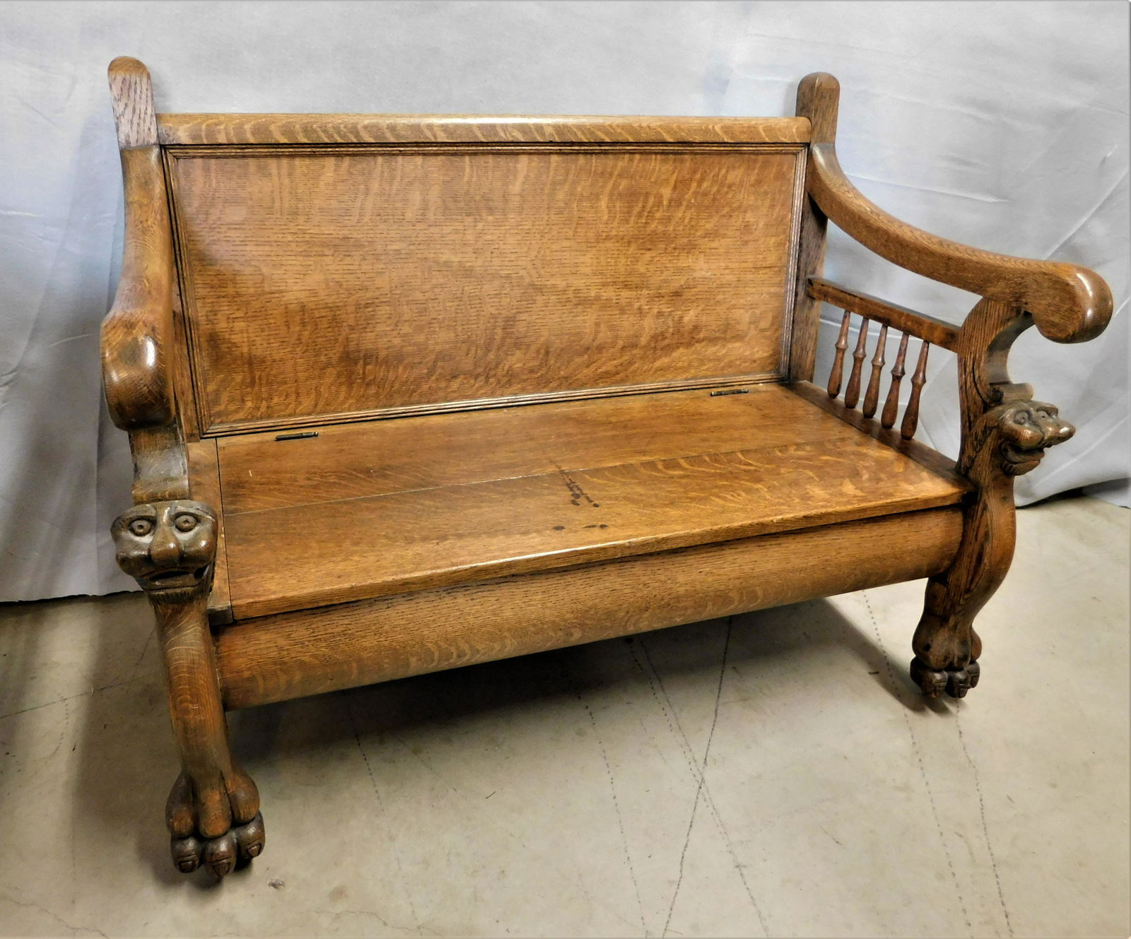 Oak Bench w/Lion Head Columns