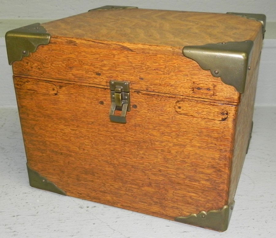 Oak brass bound work box.